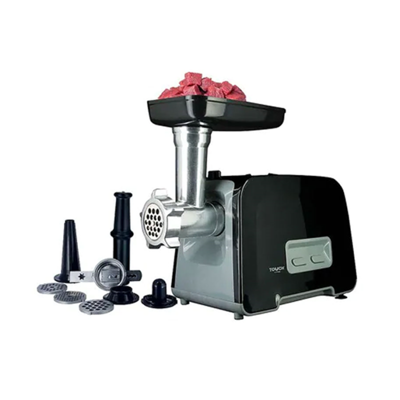 Hachoir a viande TOUCH - Puissance: 2000 watts - 3 lames en acier inoxydable - Plateau de hachoir à viande - Poussoir rond - Fonction inverse - Circuit de protection contre les surcharges - Facile à utiliser - Couleur: Noir