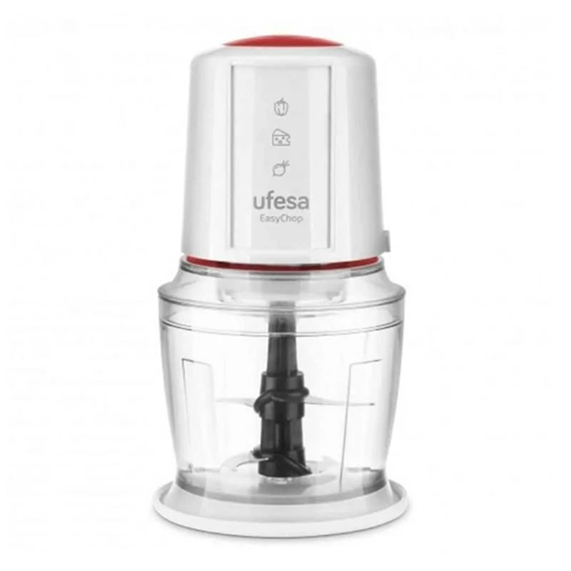 Puissance: 500 W - Capacité du hachoir: 0.8 Litres - Nombre de vitesse: 2 vitesses - Nombre de lame: 4 lames - Verrouillage de sécurité - Fréquence: 50/60 Hz - Matériau du bol: Plastique SAN - Matériau du corps du produit: Plastique ABS - Matériau des lames: Acier inoxydable - Tampon: Antichoc - Couleur: Blanc et rouge