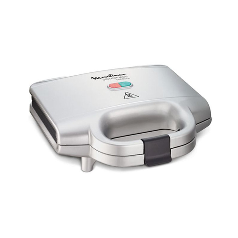 Appareil à panini MOULINEX Ultracompact - Puissance: 700W - Surface de cuisson: 22,5 cm - Thermostat automatique - Revêtement anti-adhésif - Grande poignée cool touch avec languette de verrouillage - Ultra plat pour un encombrement minimal - Couleur: Silver - Garantie: 1an