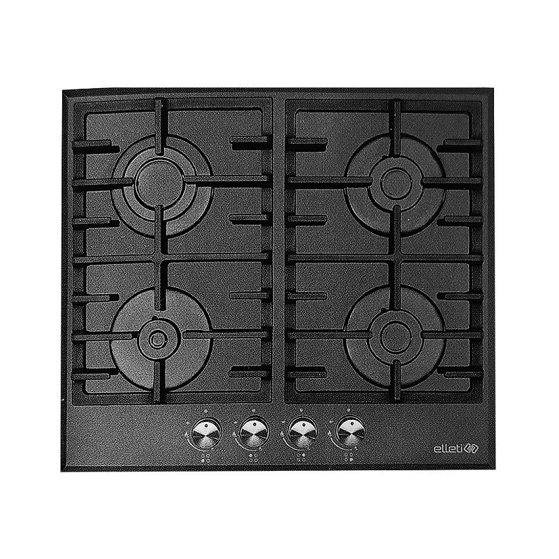 Plaque de cuisson Elleti 20225D - 4 brûleurs à gaz - Dimensions 60 cm - Allumage automatique - Système de sécurité - Corps en verre noir - Corps pour: LPG / Gaz naturel - Dimensions: 560 x 485 mm - Couleur Noir - Garantie 1 an