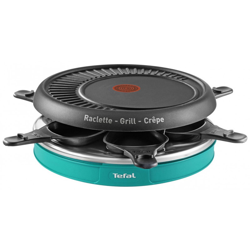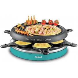 Appareil à raclette Colormania Tefal 3 en 1 Raclette, Gril, Crêpière - 6 personnes - Puissance 850 W - Base électrique Thermoplastique - Revêtement anti-adhésif - Stockage de cable - Parties lavables au lave vaisselle - Plaques démontables - Indicateur de chaleur - Longueur du câble 1,2 m - Couleur Bleu - Garantie 1 an