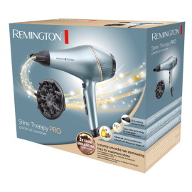 Sèche Cheveux 2200W AC9300 REMINGTON - 3x Technologies Brillance - Technologie Super Ionique - Concentrateur fin - Moteur AC longue durée qualité salon 2200W / 120km/h : performance salon - 3x températures / 2x vitesses - Air froid : renforce la brillance et fixe votre coiffure - Diffuseur - Anneau de suspension - Grille arrière amovible facile à nettoyer - Longueure du câble : 3m - Garantie 1 an