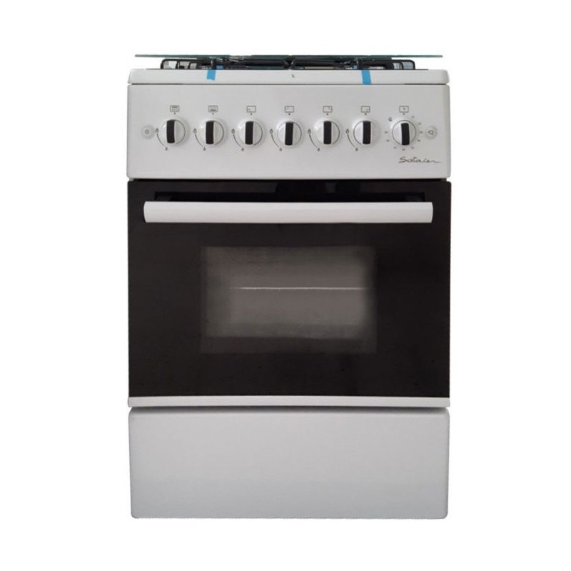 Cuisinière SOTACER - Type de Cuisinière: à gaz - Nombre de Foyers: 4 feux - Largeur: 60 cm - Minuterie - Porte Four double vitrage - Allumage automatique - Couvercle en verre - Lampe four - Couleur: Blanc