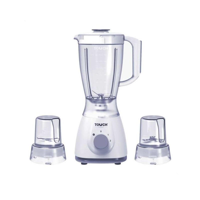 Blender TOUCH Avec Moulin et Hachoir - Capacité: 1.7 litres - Puissance: 400 watts - Nombre de Vitesse: 2 + fonction Pulse - 2 Grinder avec lame robuste - Fonctionnement silencieux - Verrouillage de sécurité - Lames robuste en acier inoxydable Couleur: Blanc