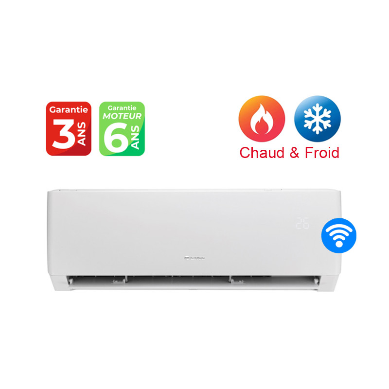 Climatiseur Inverter GREE Tropicalisé - Capacité: 24000 BTU - Mode: Chaud/Froid - Tropicalisé stable à 50° - Système T3 (-7~50℃) - Classe énergétique : 1 - Classe Climatique : T3 - Refroidissement rapide en 60s - Double moteur permettant d’obtenir un large angle de distribution d’air - 7 vitesses de ventilation - Superficie: 50-70m² - Sortie d’air "volets" entièrement fermée sans poussière, facile à démonter et à nettoyer - Distance de soufflage jusqu’à 12m, offrant un confort dans chaque coin avec la distribution d’air 3D - Connectivité : WiFi - Ultra Silencieux - Respecte l’environnement - Sécurité et fiabilité - Large plage de tension pour le fonctionnement (198~264V)-Couleur : Blanc - Garantie : 3 ans ( Garantie compresseur 6 ans)