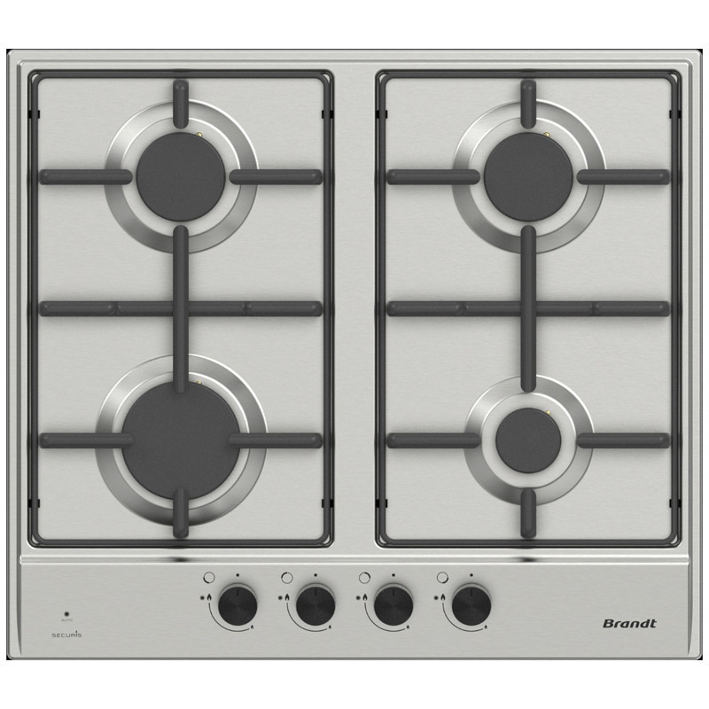 Plaque De Cuisson Encastrable Brandt BPE6411TX Nombre de feux : 4 FeuxLargeur : 60 cm - Puissance gaz max : 3150 W, 2300W, 1500W, 850W - Adapte à tous les styles de cuisson - Sécurité Gaz par thermocouple - Allumage automatique intégré aux manettes - Grilles en fonte - Couleur de la grille : Noir mat - Couleur : Inox - Garantie : 1 an