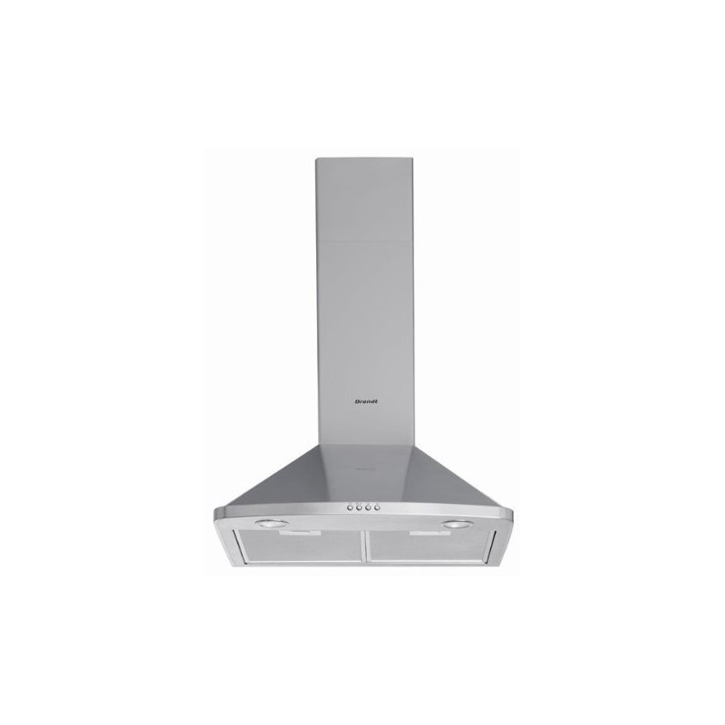Hotte Pyramide Brandt BHP3610X - Largeur : 60 Cm - Nombre de vitesse : 3 vitesses - Commande par bouton mécanique - Double moteurs - Débit maximum d'aspiration en évacuation (400 m3/h) - Eclairage LED X 1 lampe - Couleur : Inox - Garantie : 1 an
