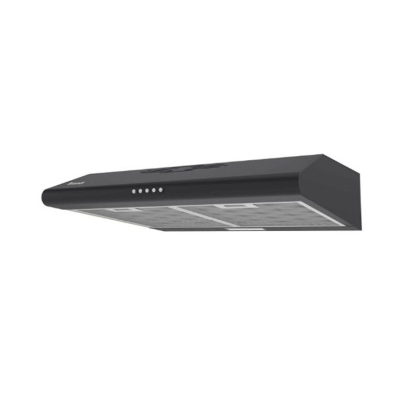 Hotte Casquette BRANDT - Largeur: 60 cm - Nombre de vitesse: 3 vitesses - Débit maximum d'aspiration en évacuation: 460 m3/h - Double moteurs - Commande mécanique par bouton - Eclairage: LED 1 lampe - Couleur: Noir - Garantie: 1an