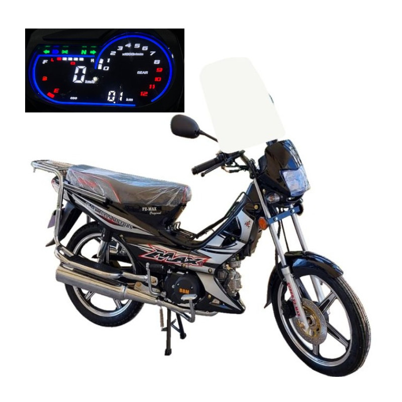 Motocycle BBM Forza Compteur Digital - Moteur: 107 cm³ 4 temps - Type De Moteur: Mono cylindre 4 temps - Refroidissement: A air - Transmission: Finale: chaine - Embrayage: multi disques - Nombre de vitesses: 4 rapports - Réservoir: 3.5 Litres - Système de démarrage: Électrique/kick - Allumage: CDI - Freinage: Avant: Frein à disque/Arrière: Frein tambour - Roues: 17 pouces - Pneus: Avant: 2.50-17 - Arrière: 2.75-17 - Suspension: Avant: fourche télescopique ; Arrière: hydraulique - Longueur: 1950 mm - Empattement: 1245 mm - Garde au sol: 256 mm - Hauteur de selle: 790 mm - Couleur: Noir - Garantie: 3000 KM