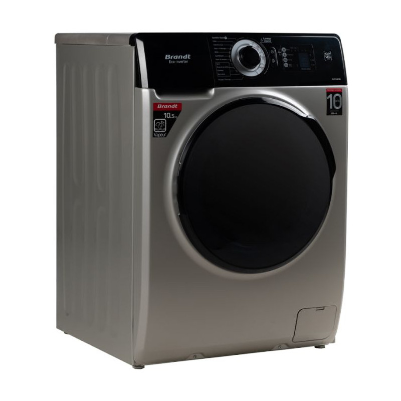 Lave Linge Frontal BRANDT - Capacité de lavage: 10.5 Kg - Vitesse d'essorage: 1400 tr/min - Classe Énergétique: A+++ - 12 Programmes - Avec Afficheur du déroulement des programmes LCD - Moteur BLDC (Eco-Inverter) - Lavage rapide - Dimensions: H X L X P: 85 x 60 x 65 cm - Couleur: Silver - Garantie: 2 ans