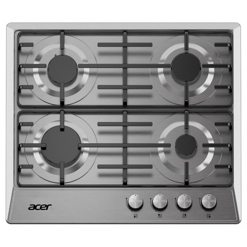 Plaque de cuisson 60 cm - 4 feux à gaz: Brûleur rapide / 2x Brûleurs semi-rapides / Petit brûleur - Commandes frontales - Allumage automatique une main - Grilles en fonte - Couleur Inox - Garantie 1 an