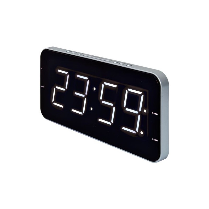 Radio réveil double alarme de la marque Roadstar radio analogique FM avec un grand afficheur blanc taille Jumbo, 20 stations en mémoire , Réglage de l’intensité lumineuse de l’écran