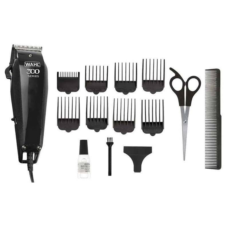 Tondeuse Homme Wahl Pro Serie 300 / Alimentation : Rechargeable / Puissance : 10 Watts / Largeur des lames : 4,6 cm / Longueur de cheveux maximum : 2,5 cm / Longueur de cheveux minimum : 1 mm / Brosse de nettoyage / Peigne à cheveux / Ciseaux inclus / Huile incluse / Couleur : Noir / Garantie : 1 an